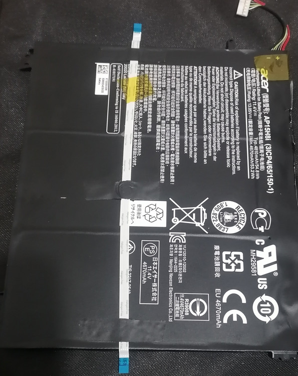 باتری لپ تاپ ایسر مدل AP15H8i(3ICP4/65/150-1 از روی دستگاه باز شده اما با کوچکترین تغییر یا کارکرد غیر عادی درصحت و سلامت 100 درصد هست