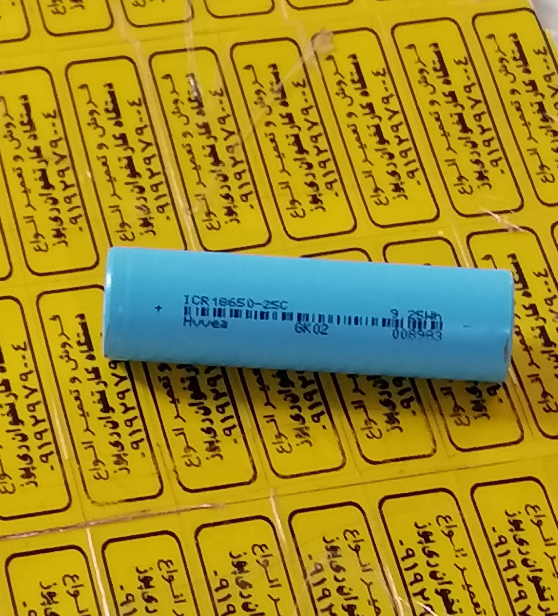 باتری لیتیوم یون Hvvea ICR18650-25 با ظرفیت نامی 2500mAh استوک بدون کارکرد با ضریب تخلیه 25c