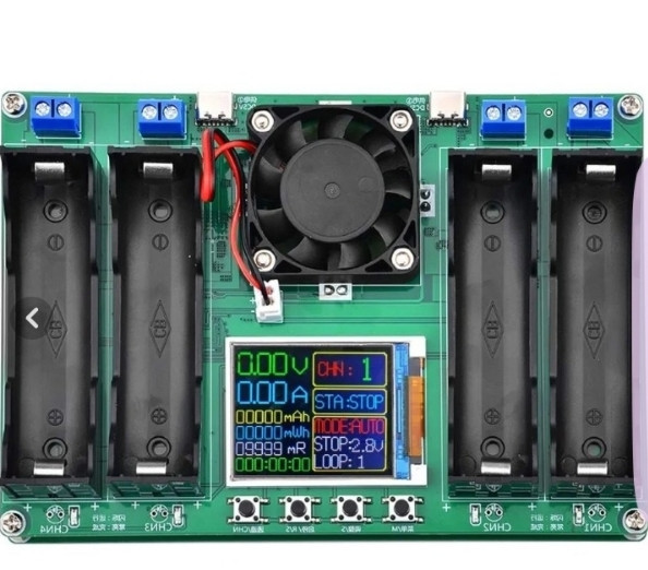 تستر ظرفیت و مقاومت داخلی باتری لیتیوم 18650 چهار کاناله با نمایشگر